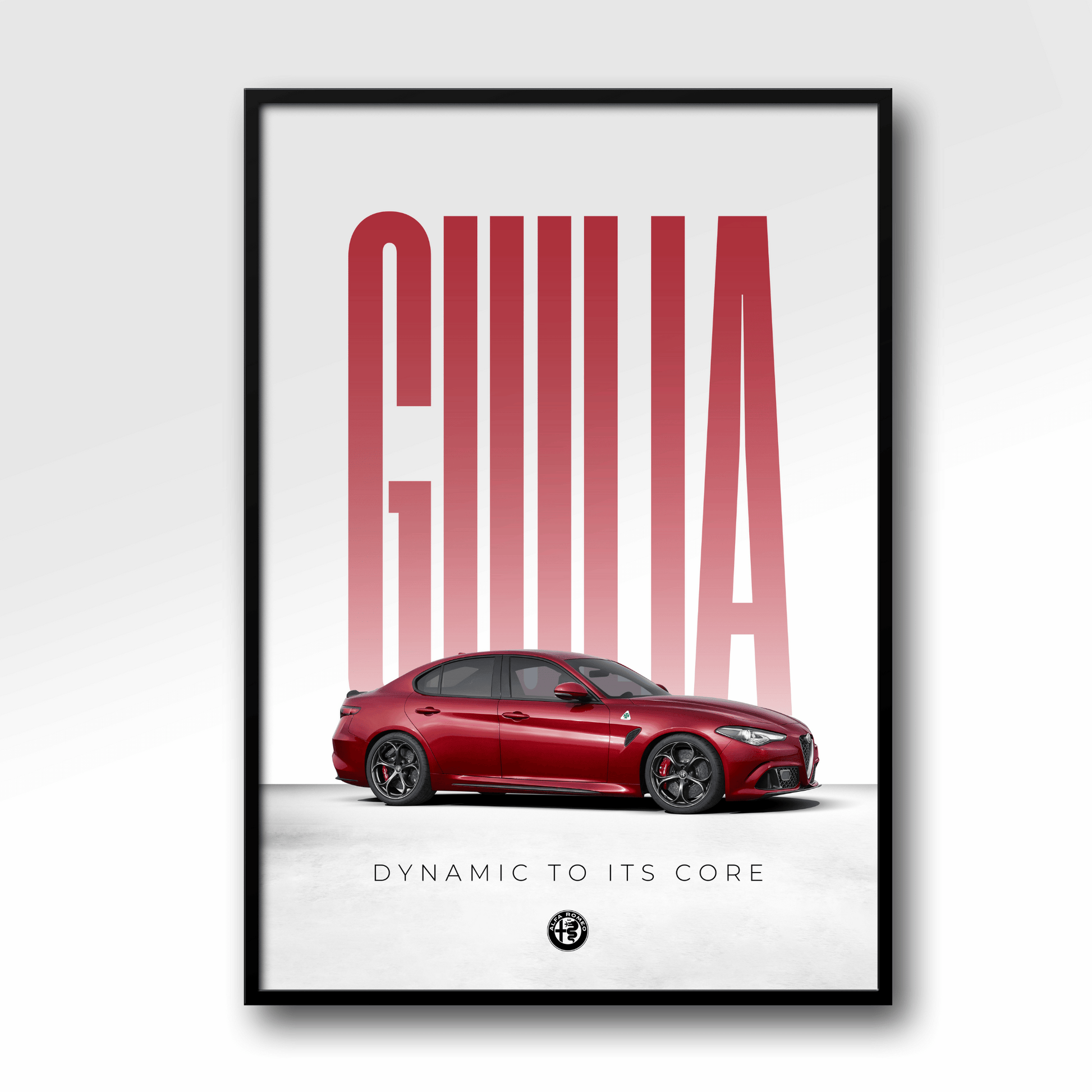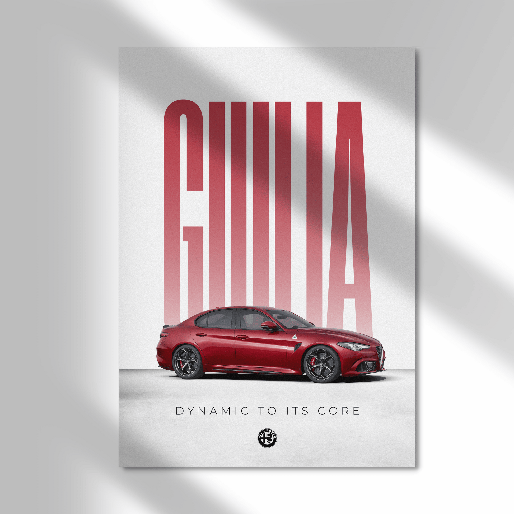 Affichez votre passion pour l'automobile avec ce magnifique poster de Alfa Roméo Giulia Quadrifoglio en édition Pure.