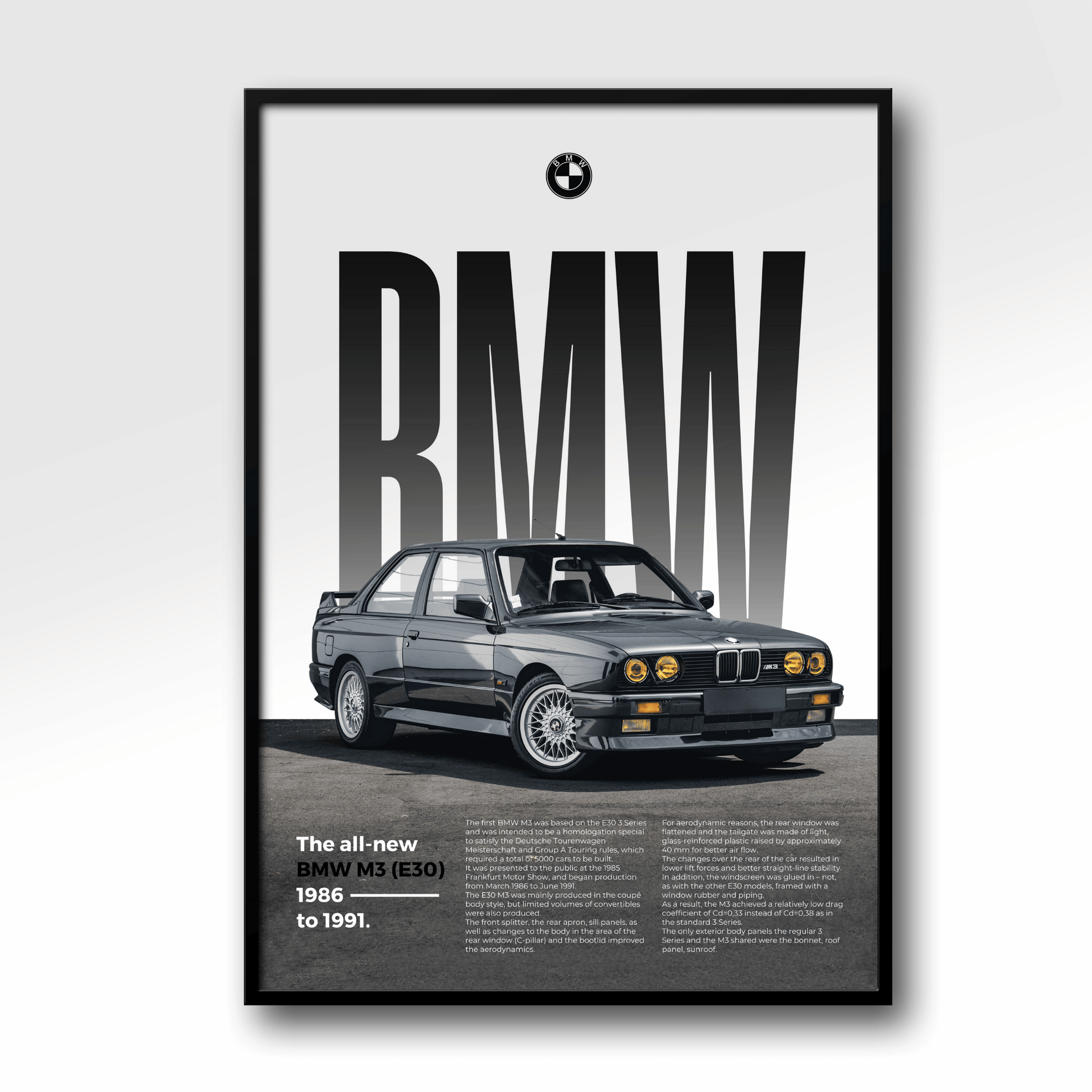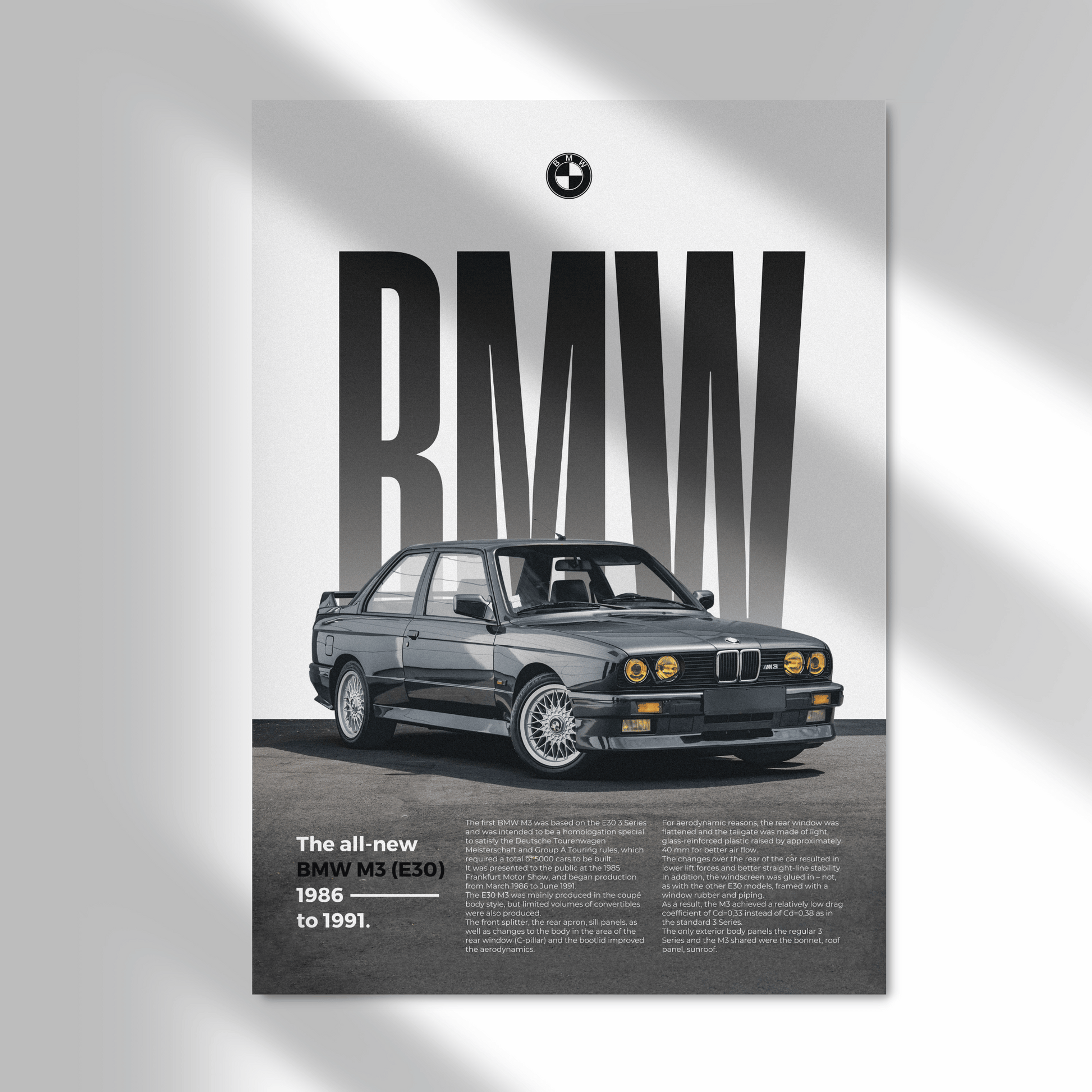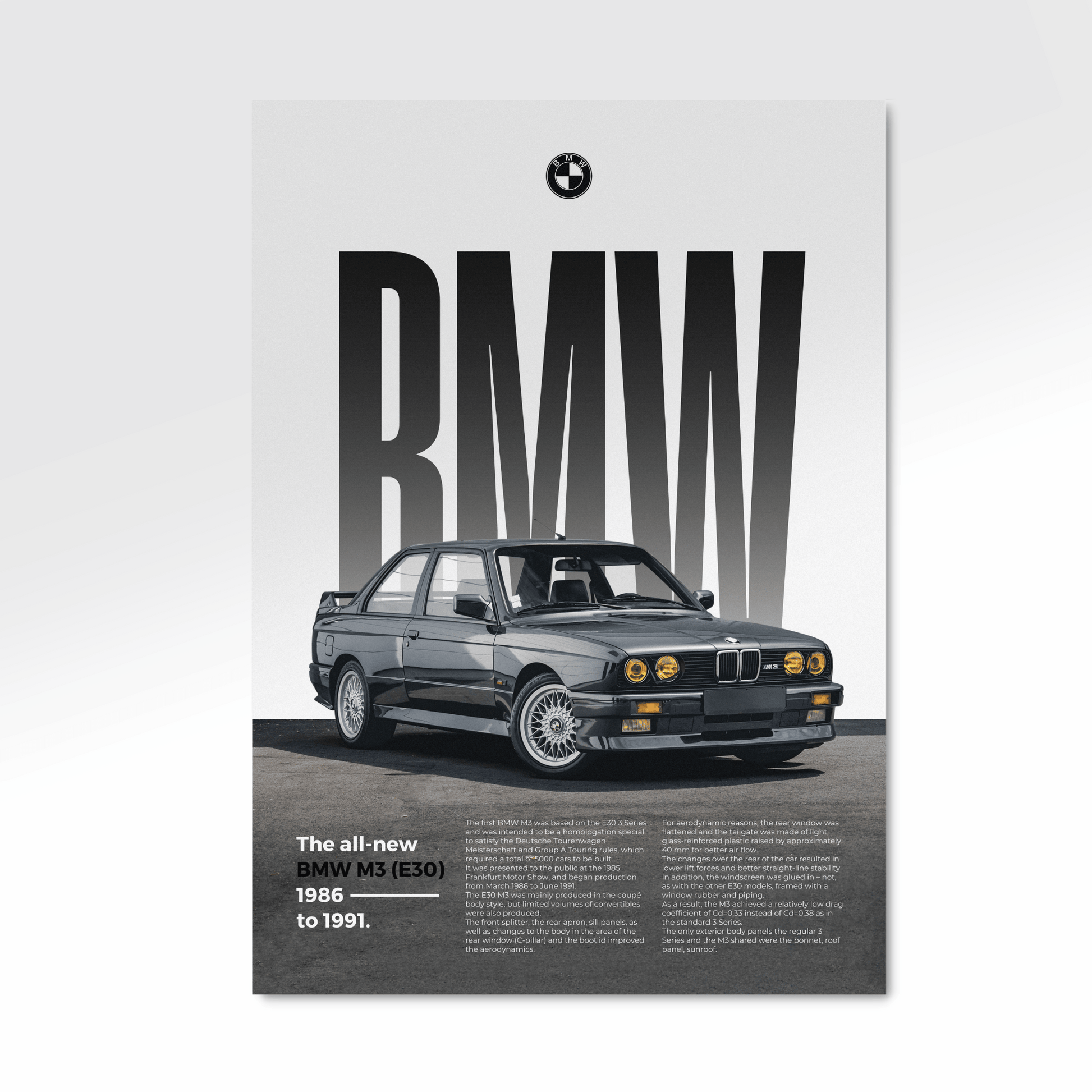 Affichez votre passion pour l'automobile avec ce magnifique poster de BMW M3 E30 en édition Classique.