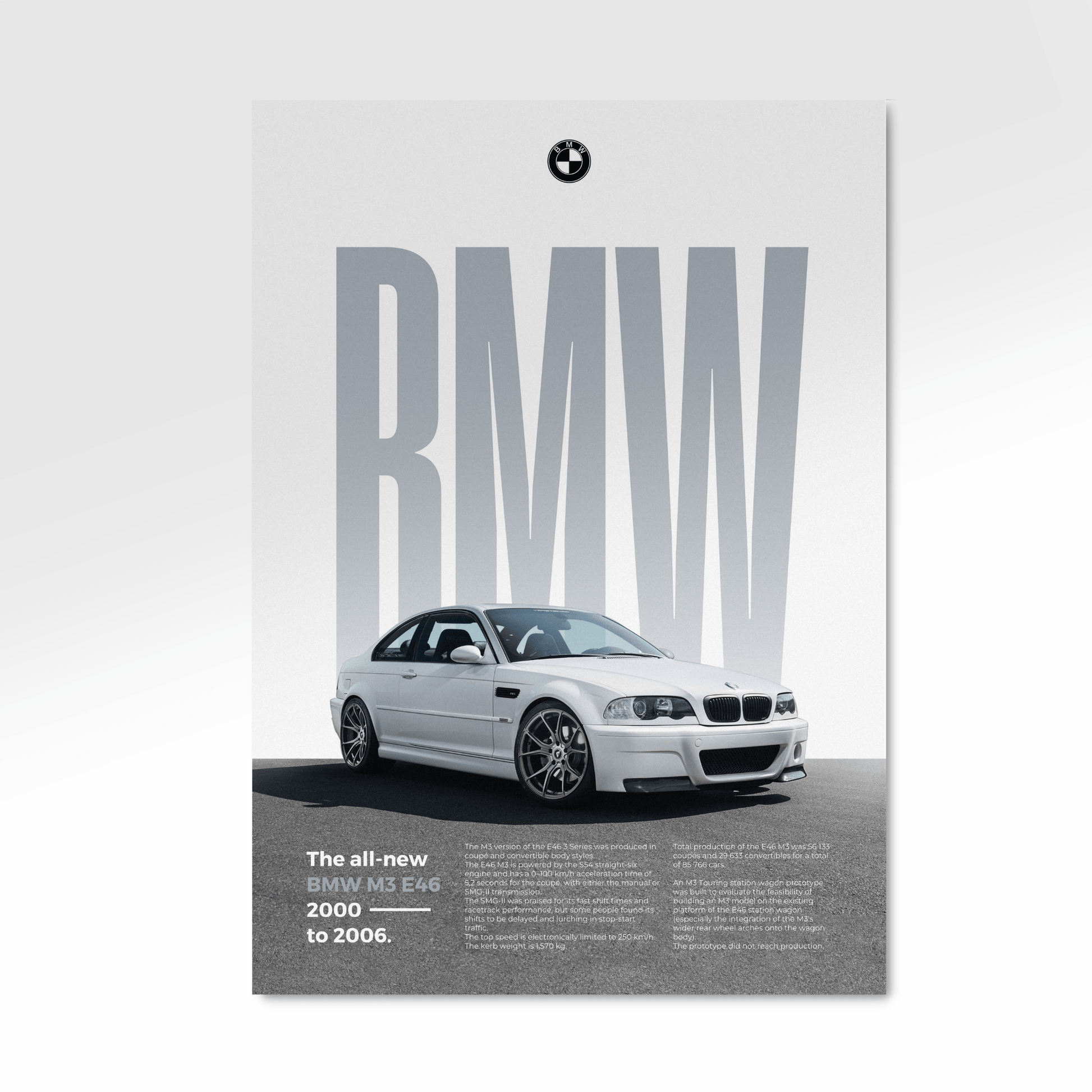 Affichez votre passion pour l'automobile avec ce magnifique poster de BMW M3 E46 en édition Classique.
