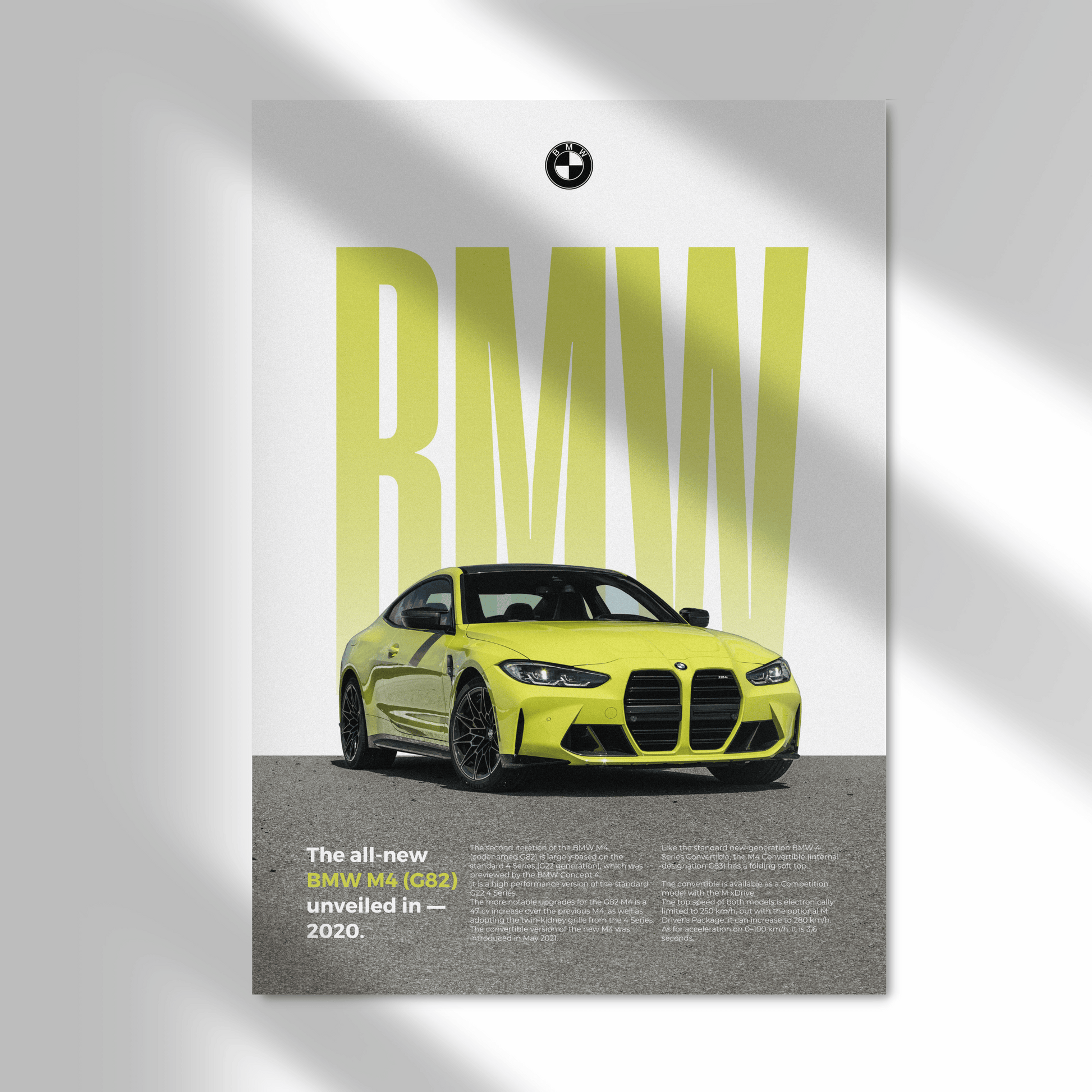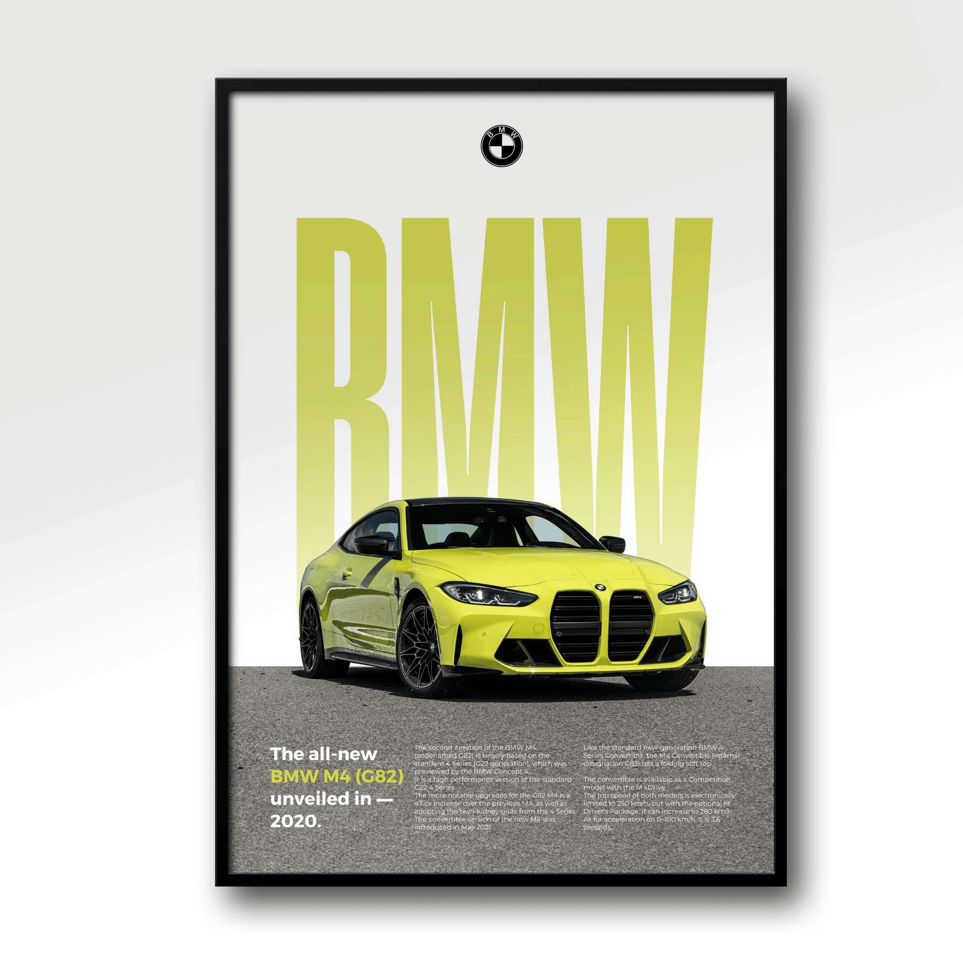 Affichez votre passion pour l'automobile avec ce magnifique poster de BMW M4 Competition (G82) en édition Classique.