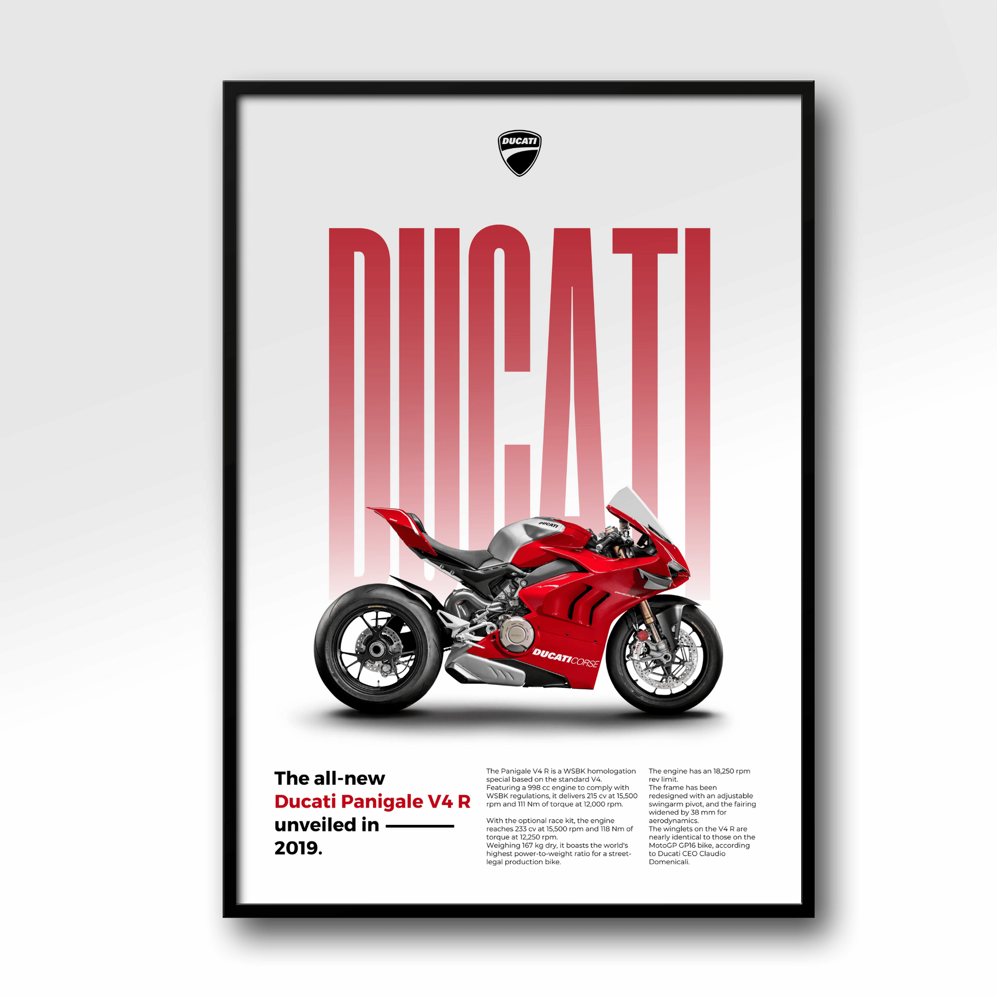 Affichez votre passion pour l'automobile avec ce magnifique poster de Ducati Panigale V4 R en édition Classique.