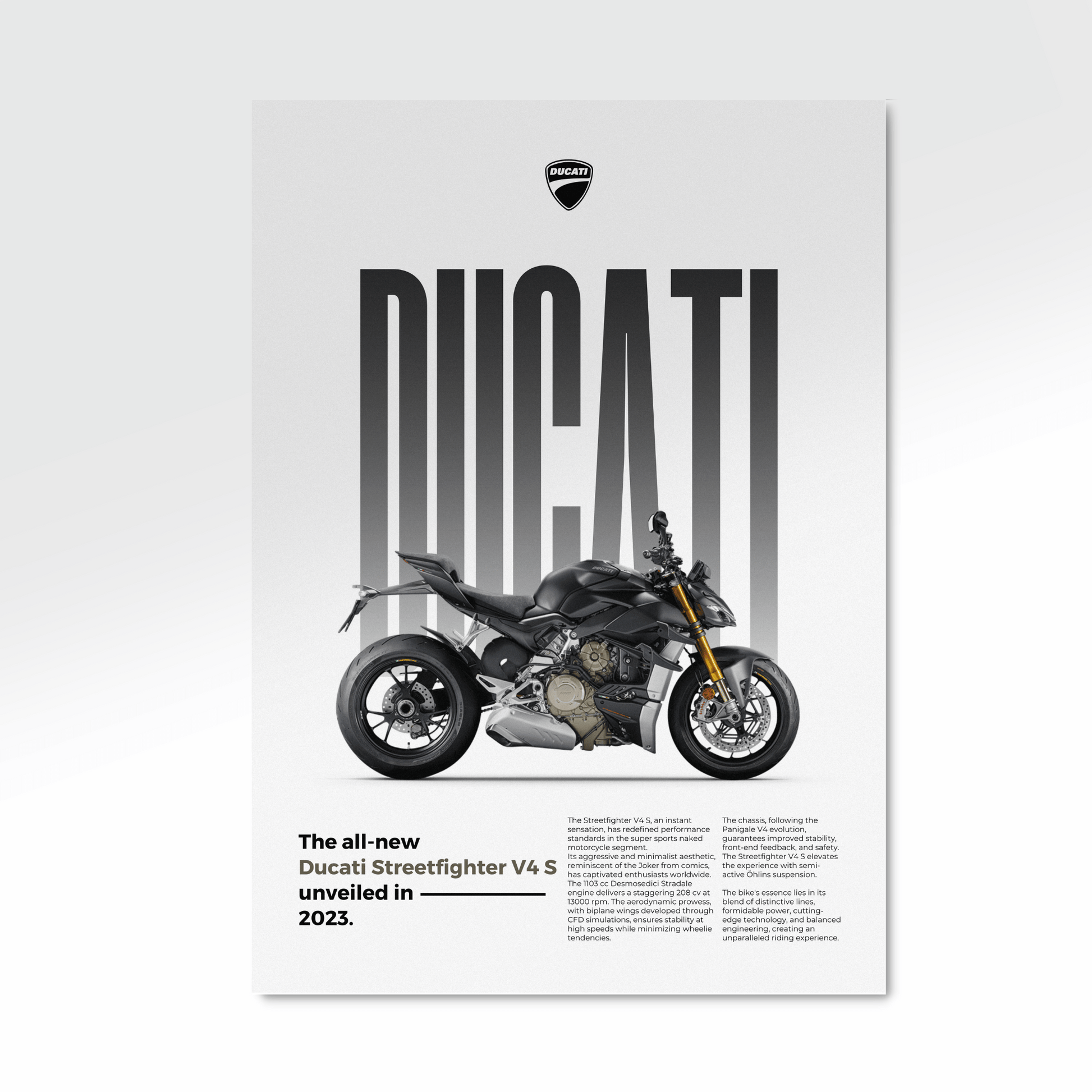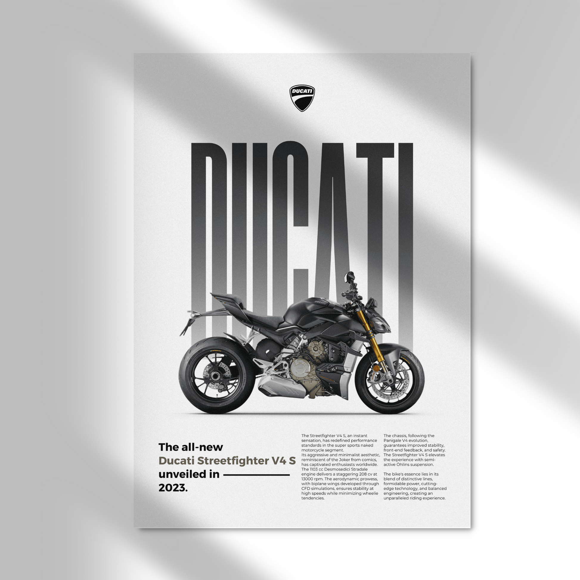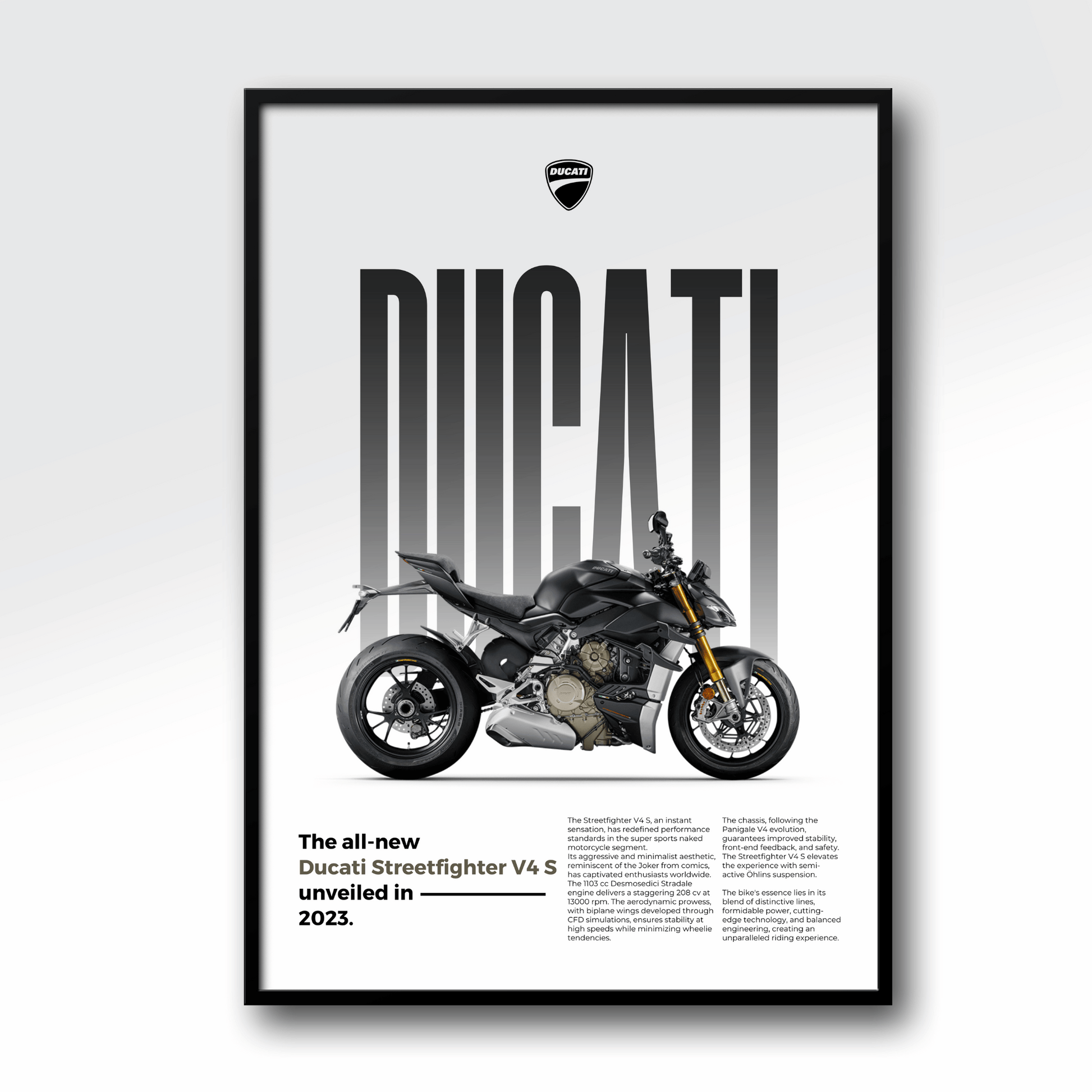 Affichez votre passion pour l'automobile avec ce magnifique poster de Ducati StreetFighter V4S en édition Classique.