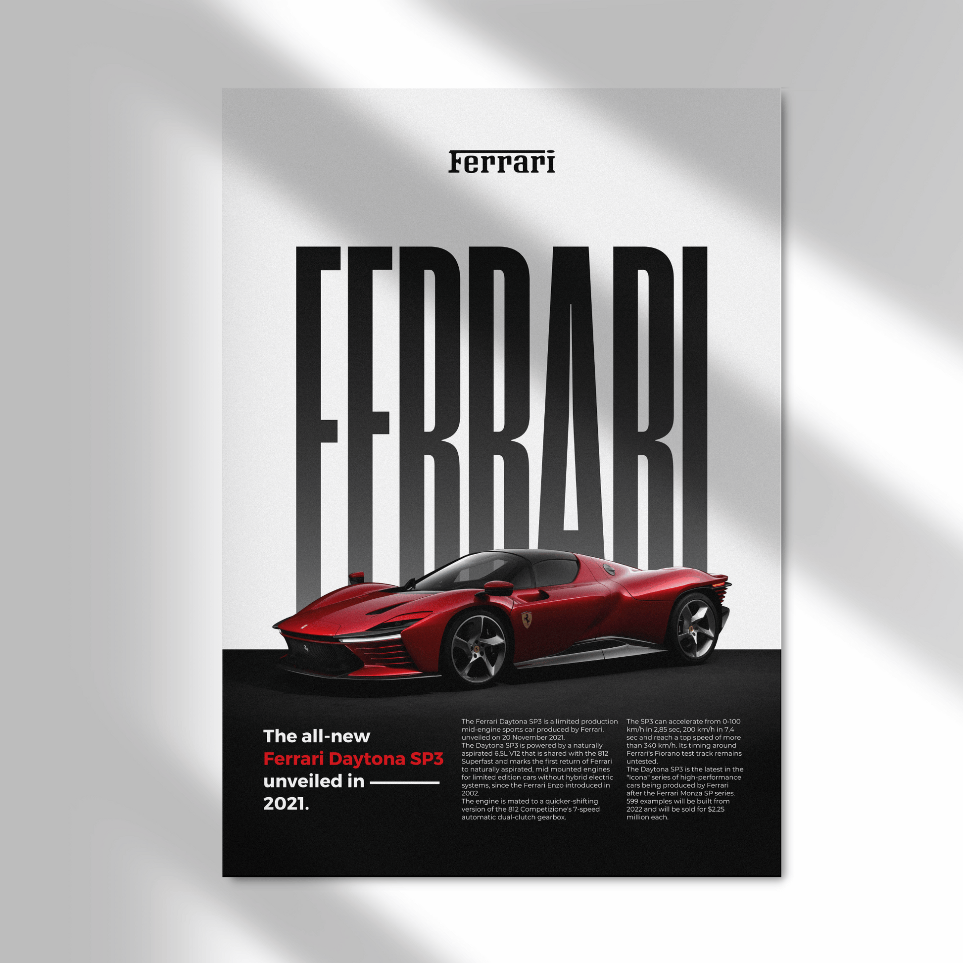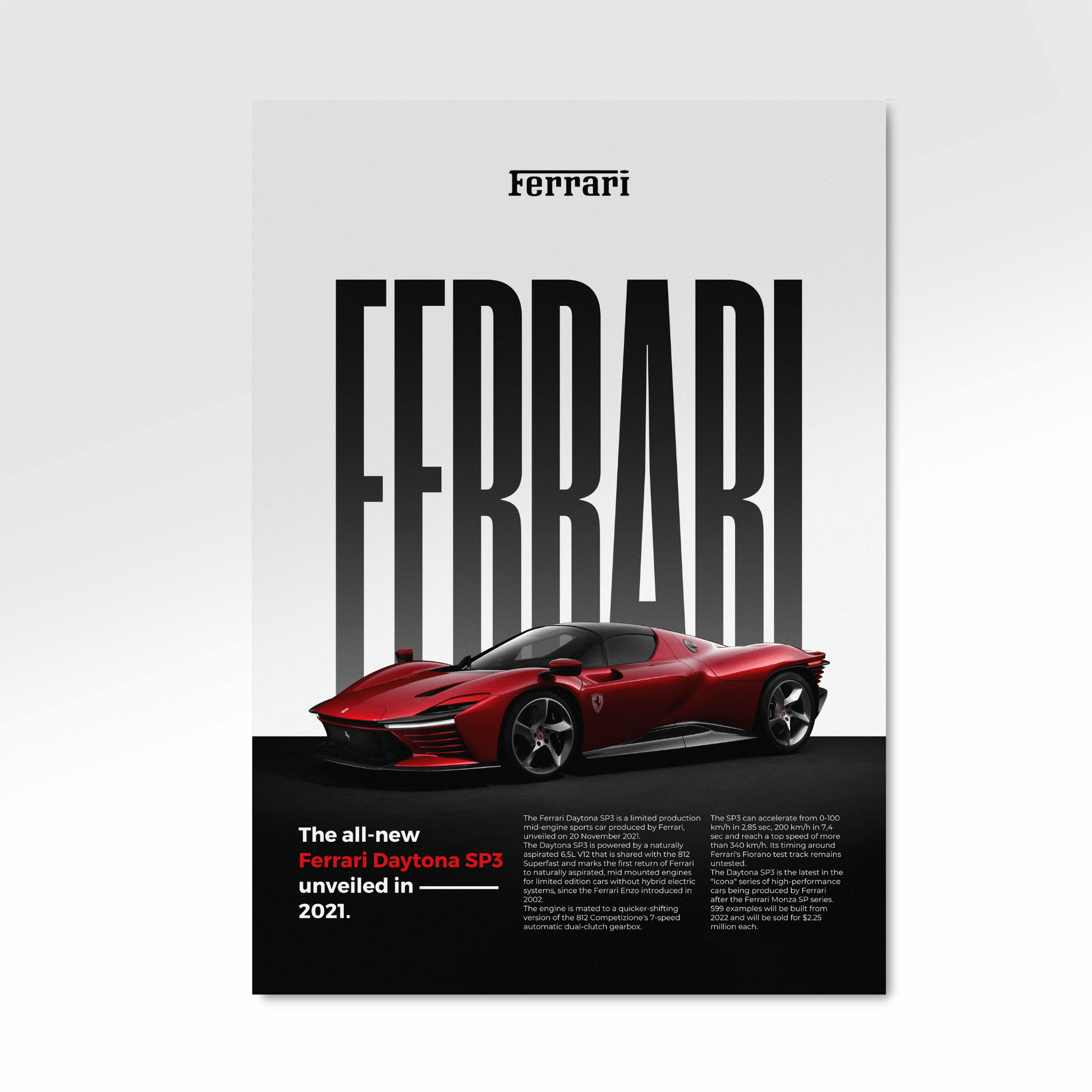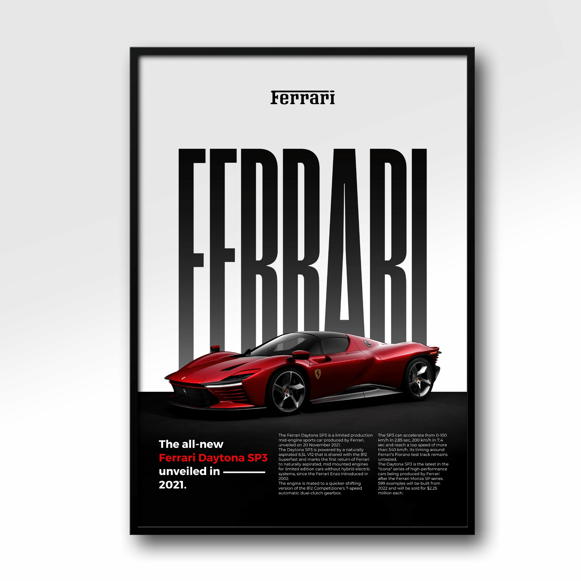 Affichez votre passion pour l'automobile avec ce magnifique poster de Ferrari Daytona SP3 en édition Classique.