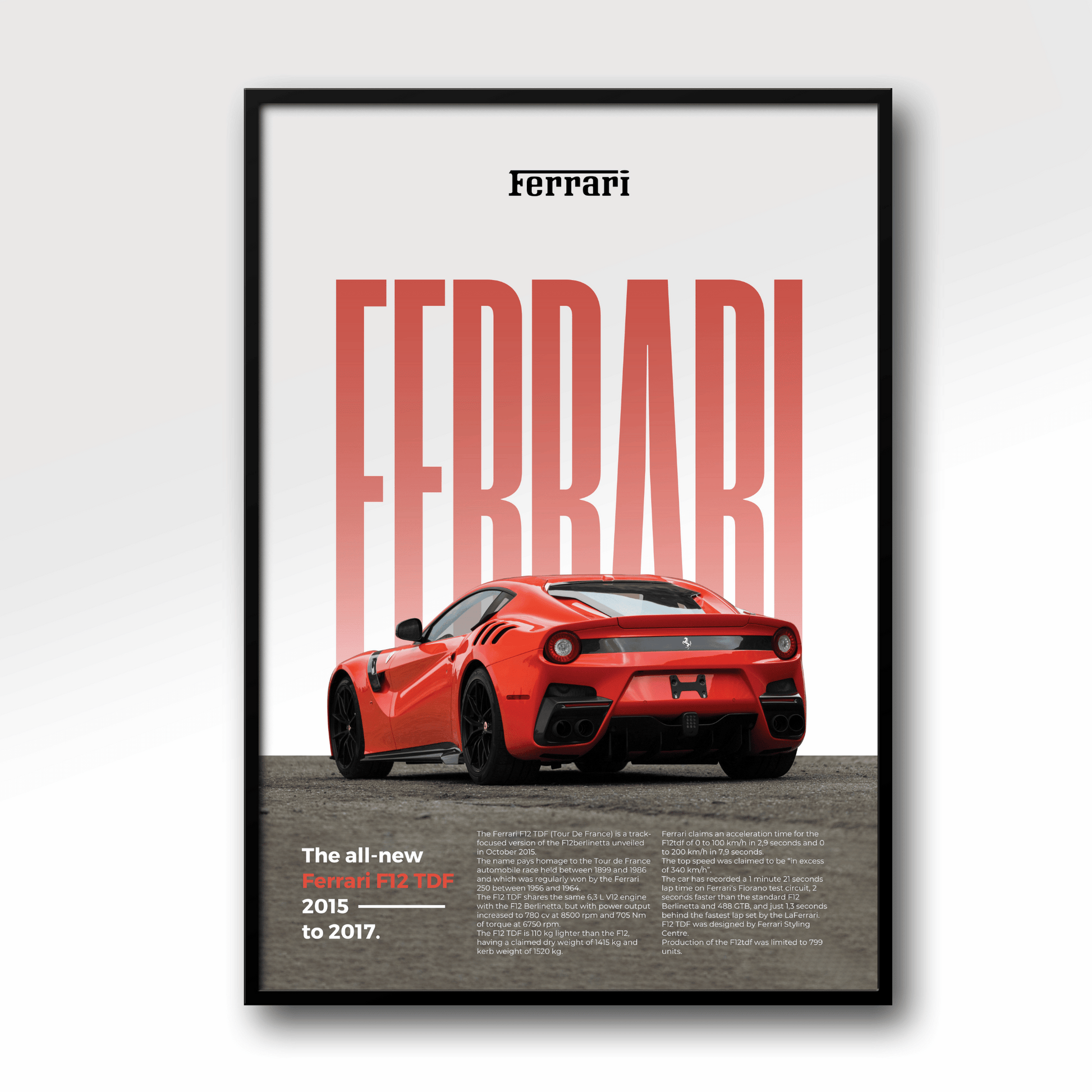 Affichez votre passion pour l'automobile avec ce magnifique poster de Ferrari F12 TDF en édition Classique.