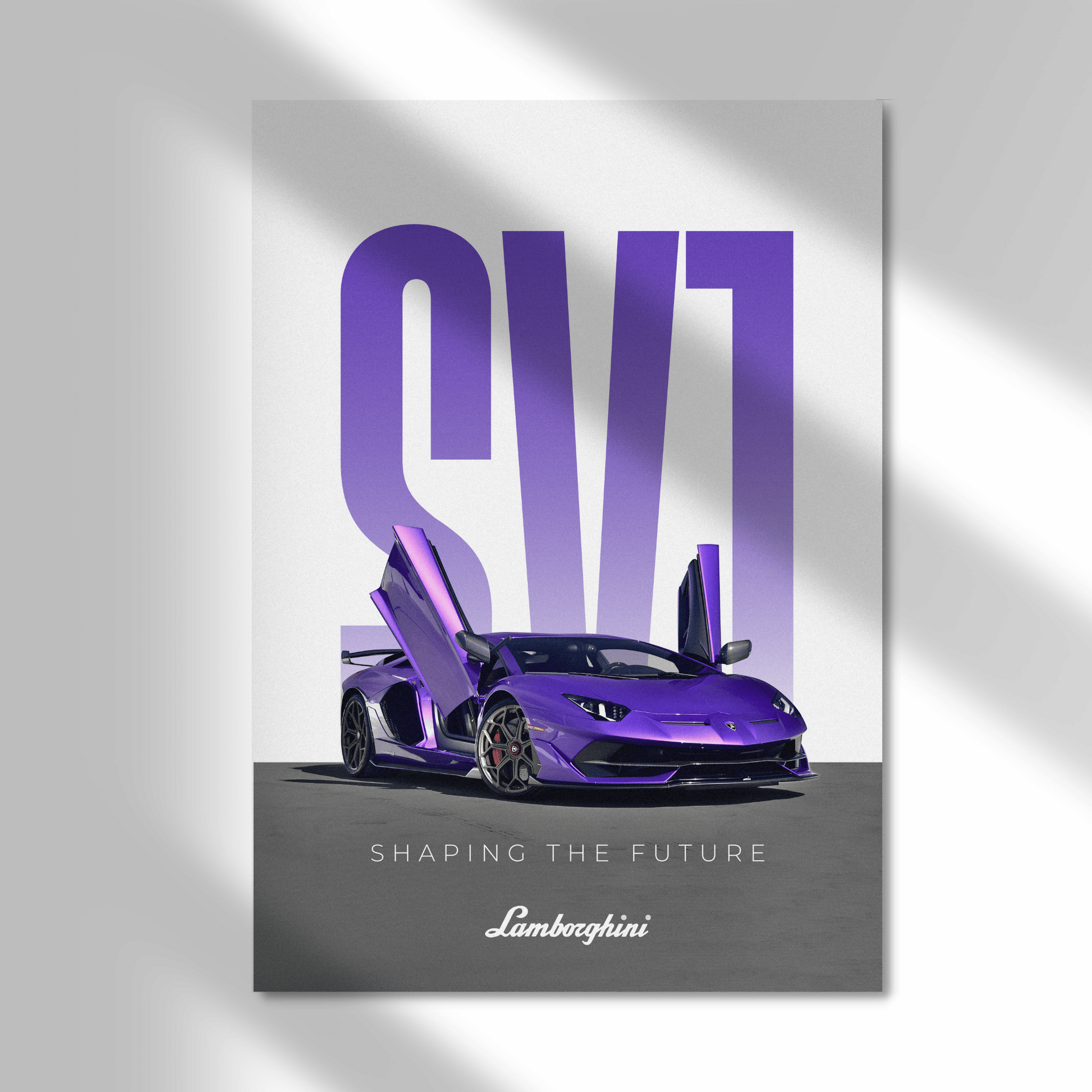 Affichez votre passion pour l'automobile avec ce magnifique poster de Lamborghini Aventador SVJ en édition Pure.