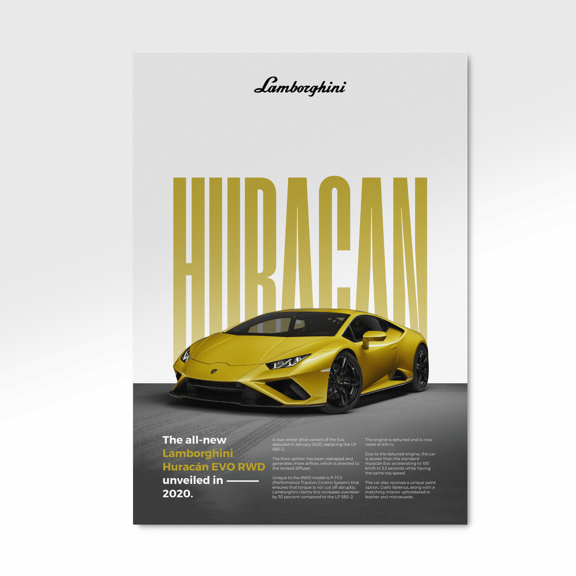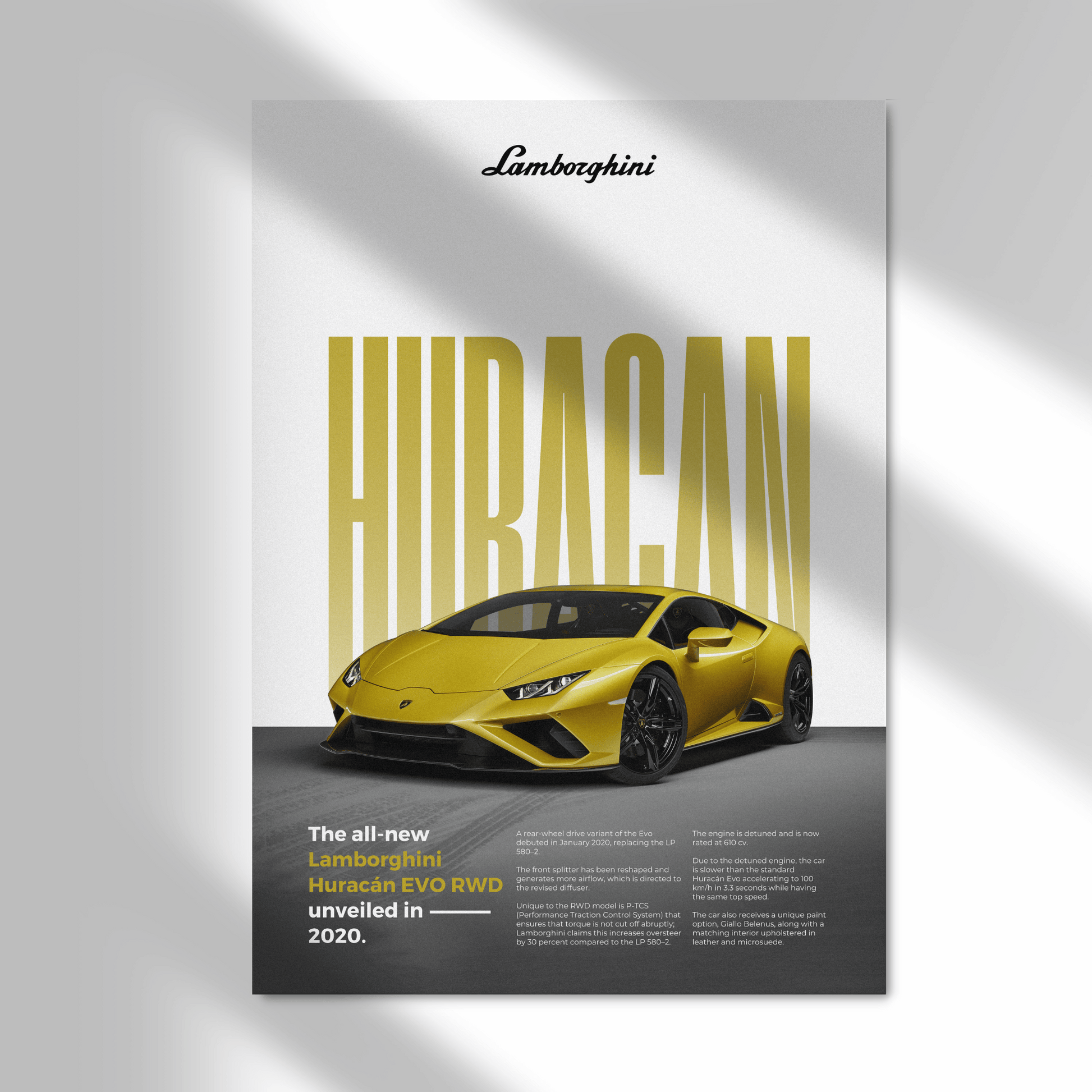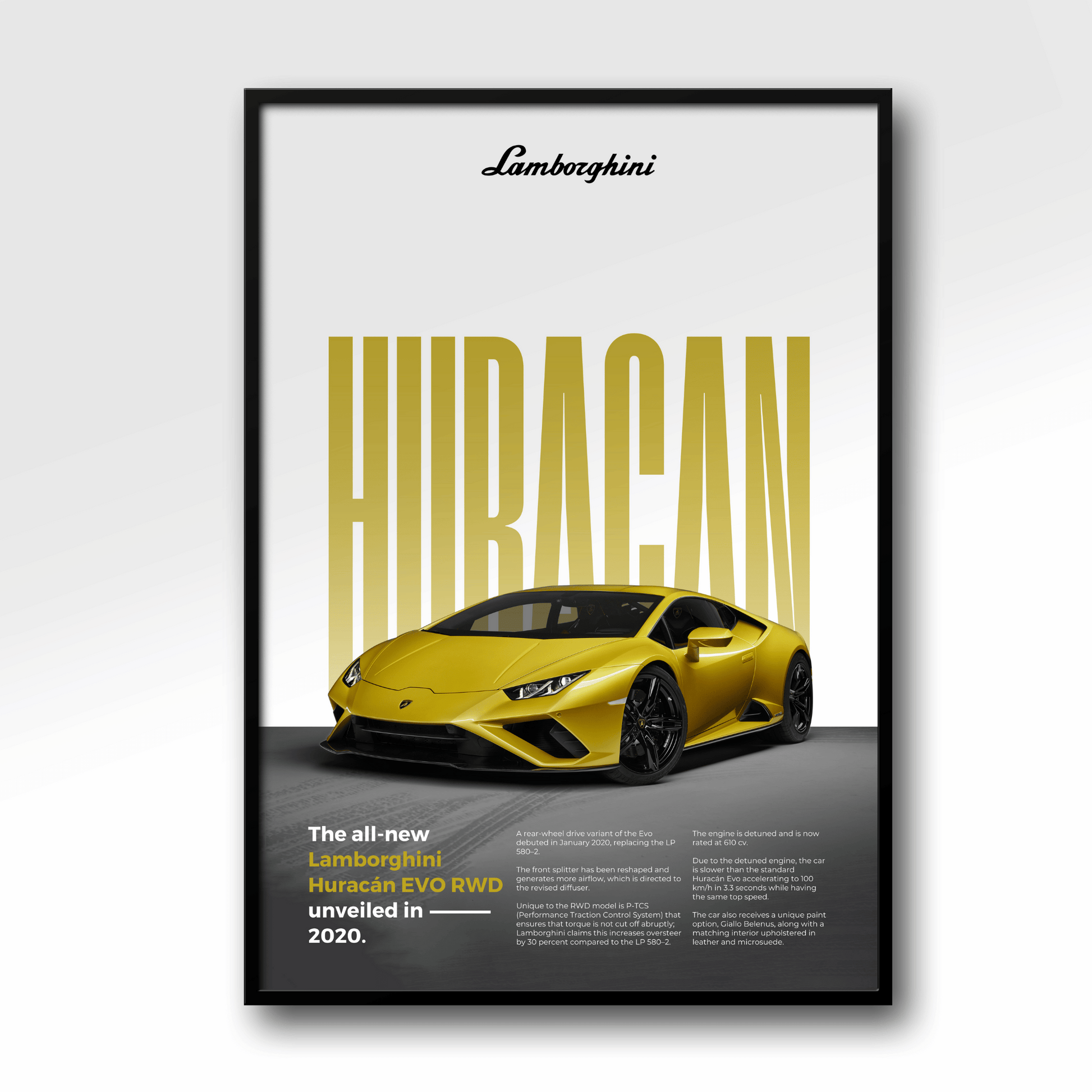 Affichez votre passion pour l'automobile avec ce magnifique poster de Lamborghini Huracán EVO RWD en édition Classique.
