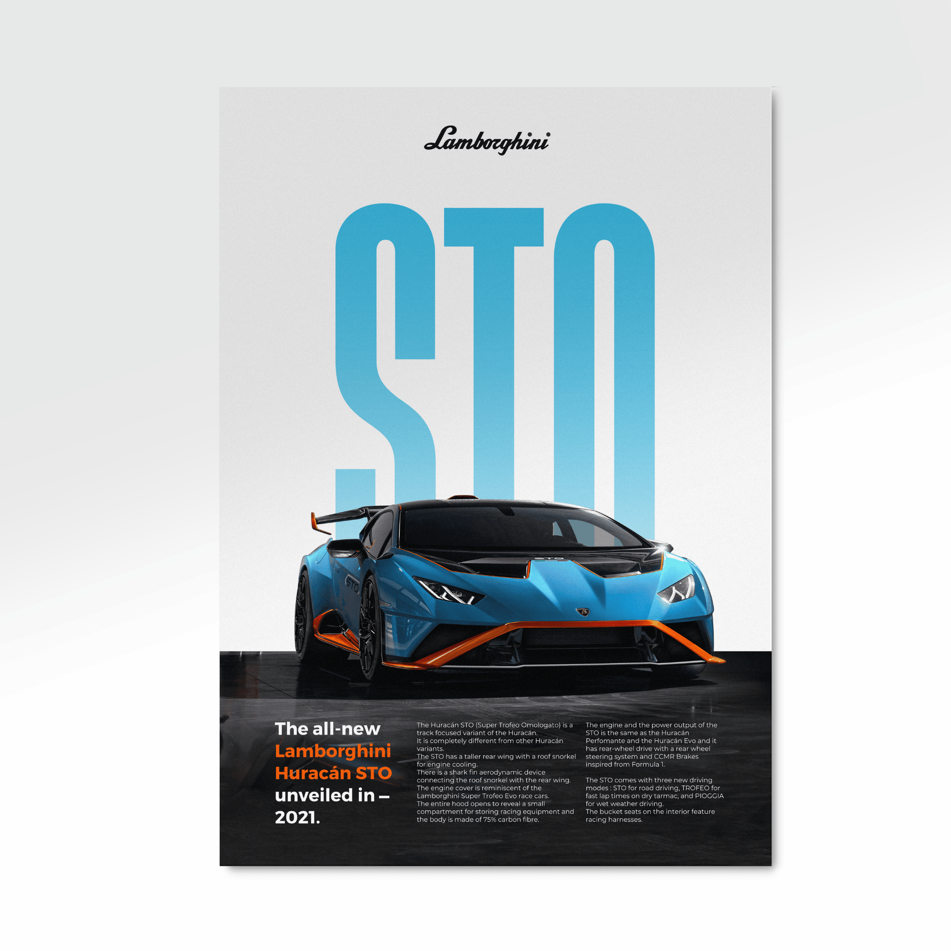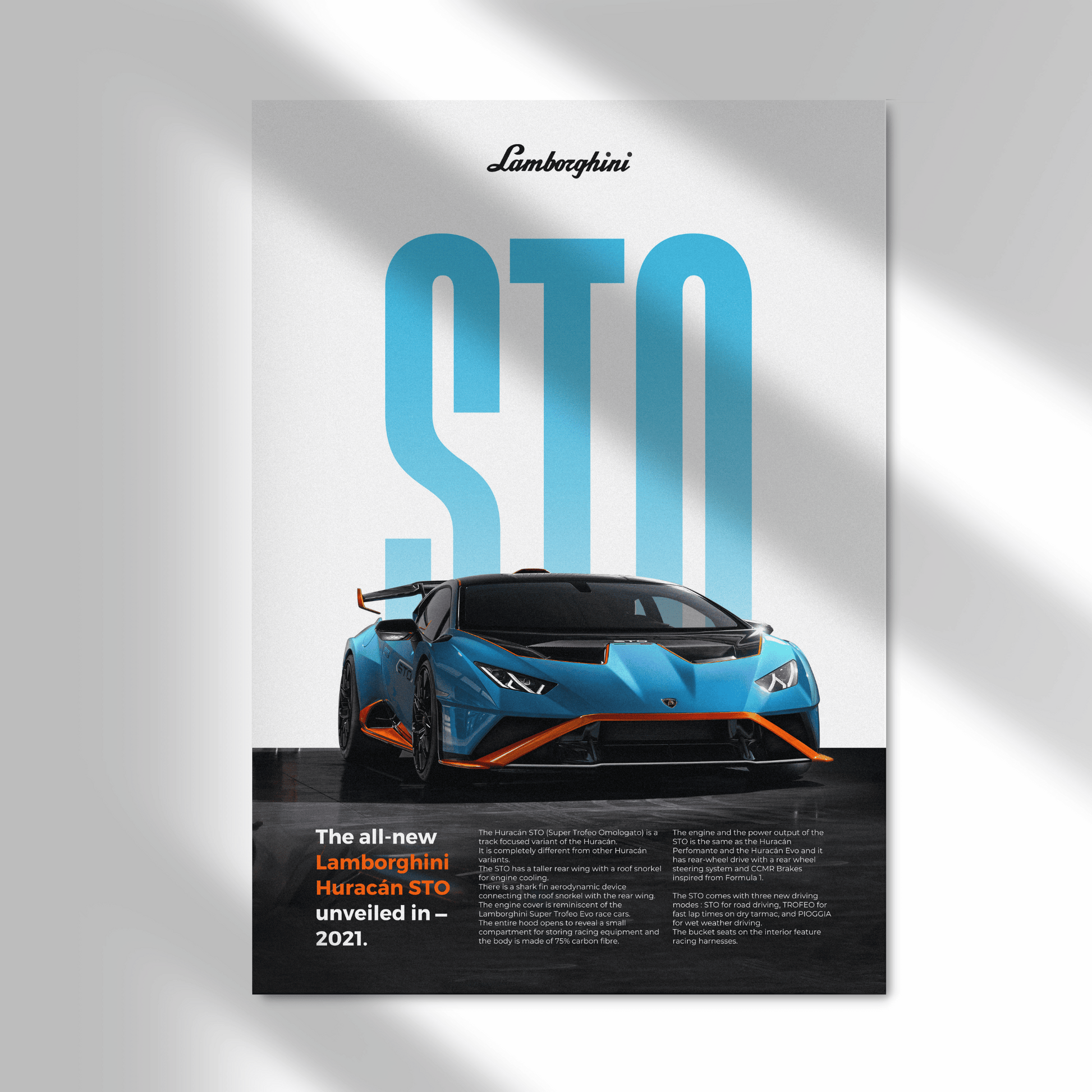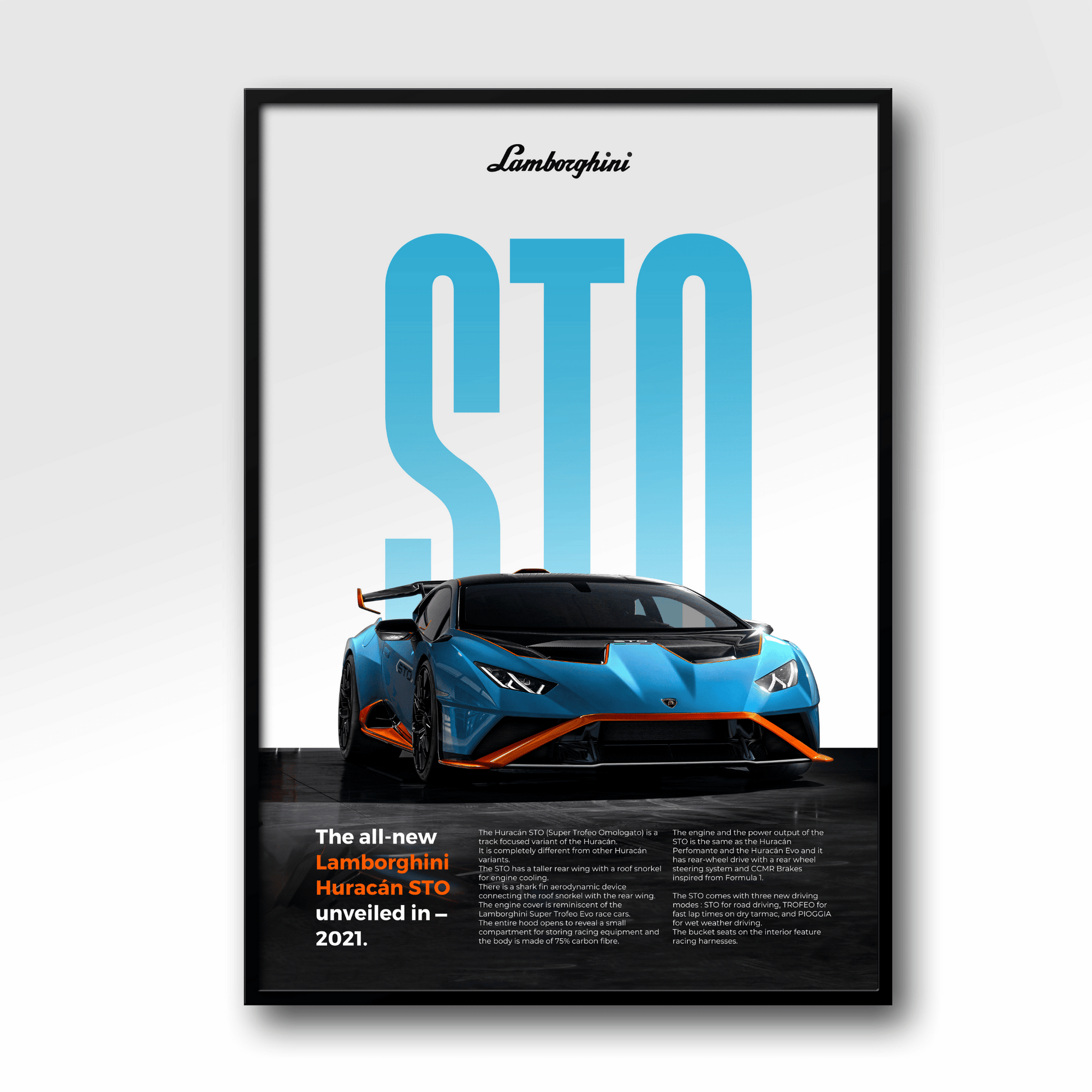 Affichez votre passion pour l'automobile avec ce magnifique poster de Lamborghini Huracán STO en édition Classique.