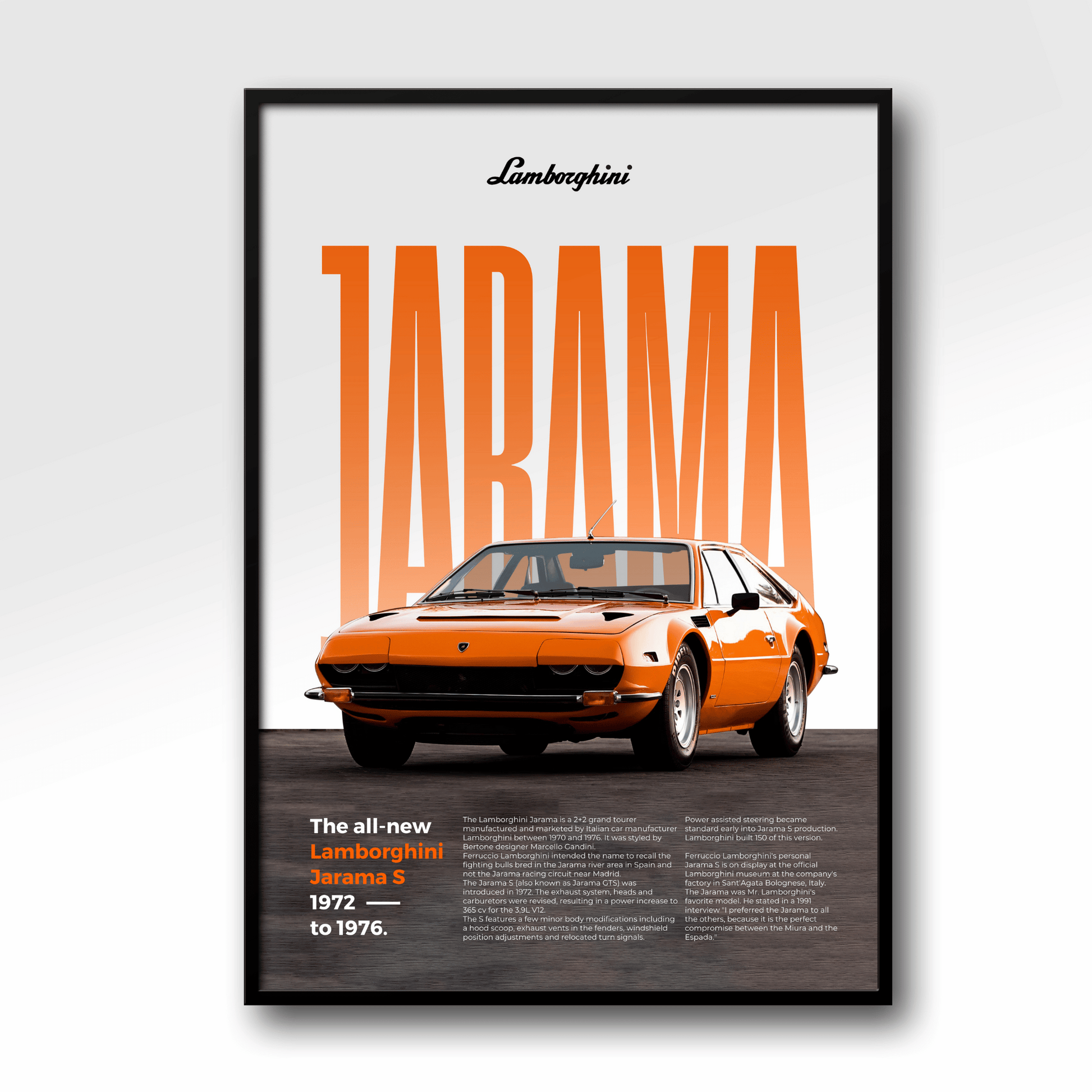 Affichez votre passion pour l'automobile avec ce magnifique poster de Lamborghini Jarama S en édition Classique.