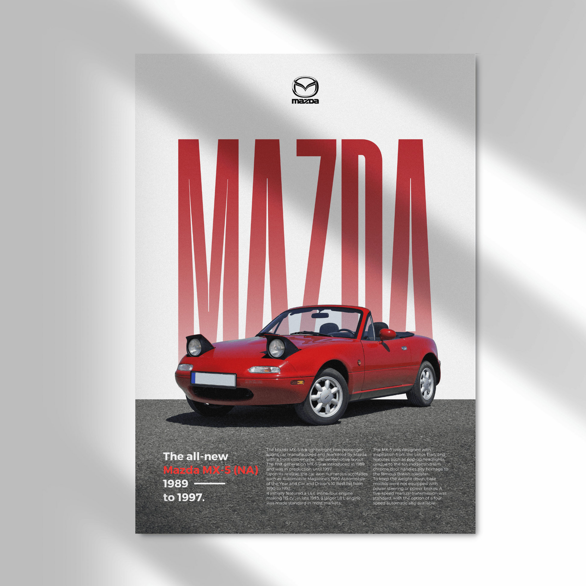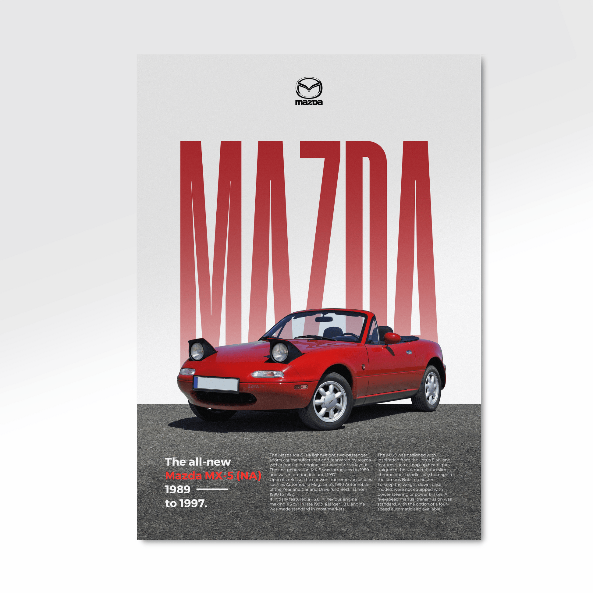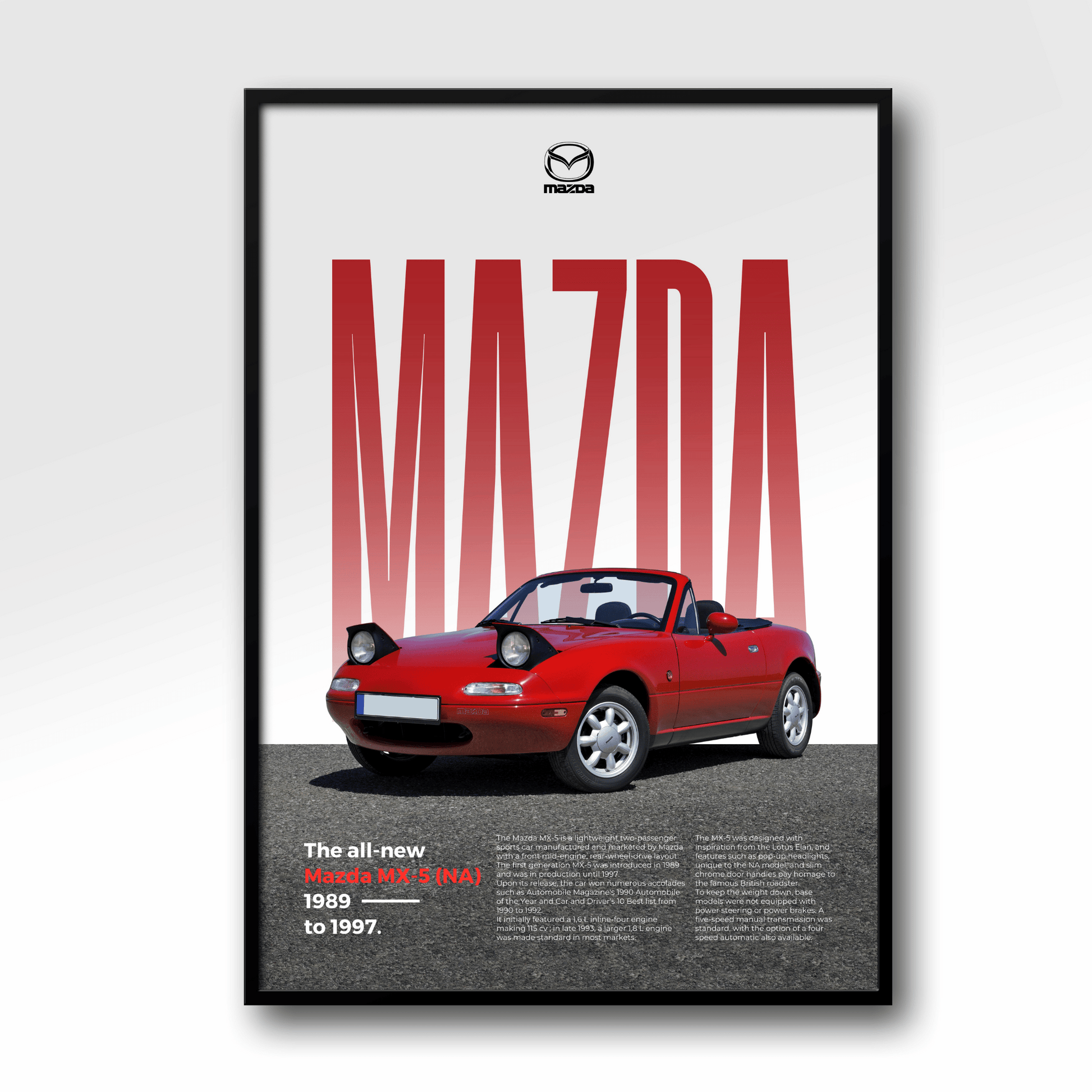 Affichez votre passion pour l'automobile avec ce magnifique poster de Mazda MX-5 en édition Classique.
