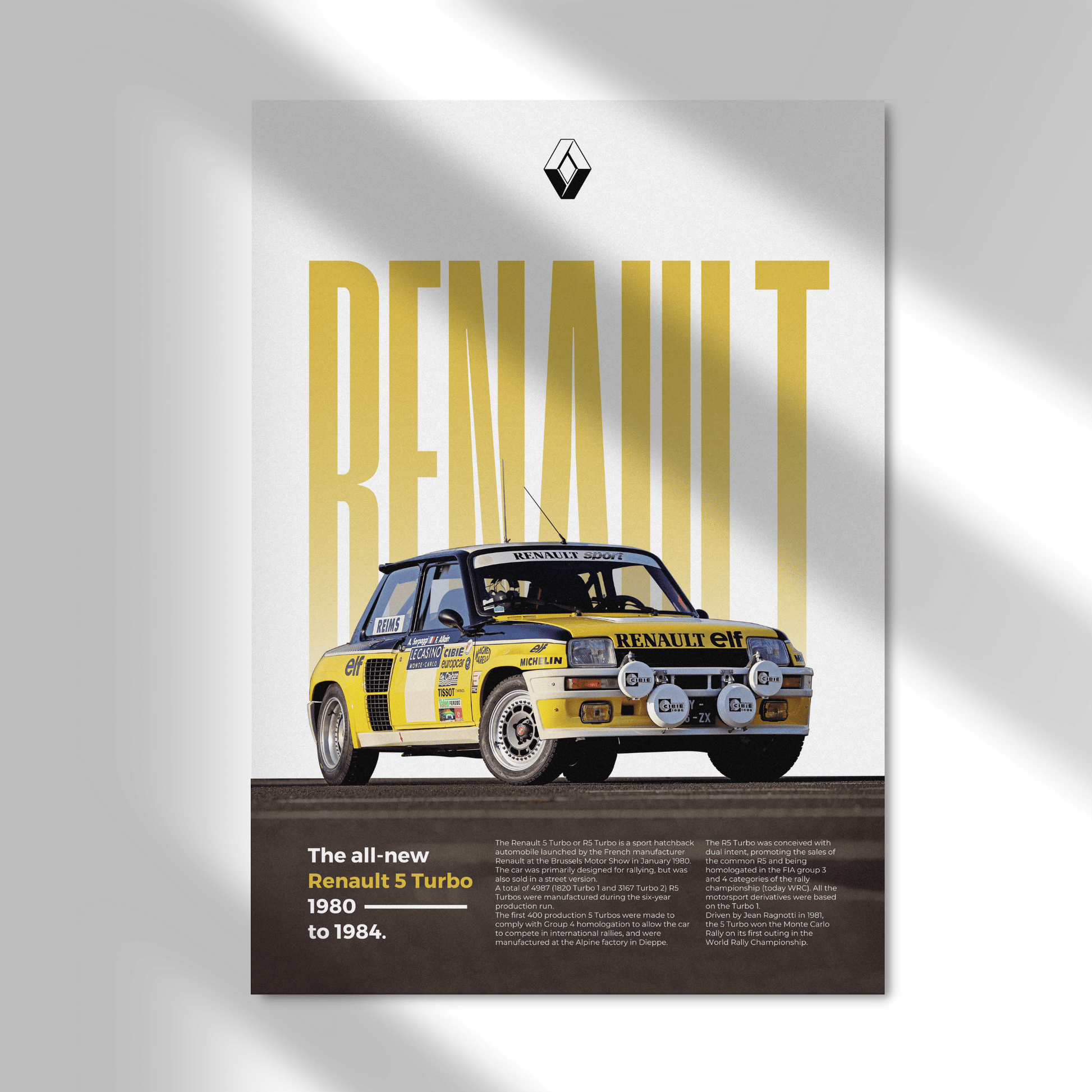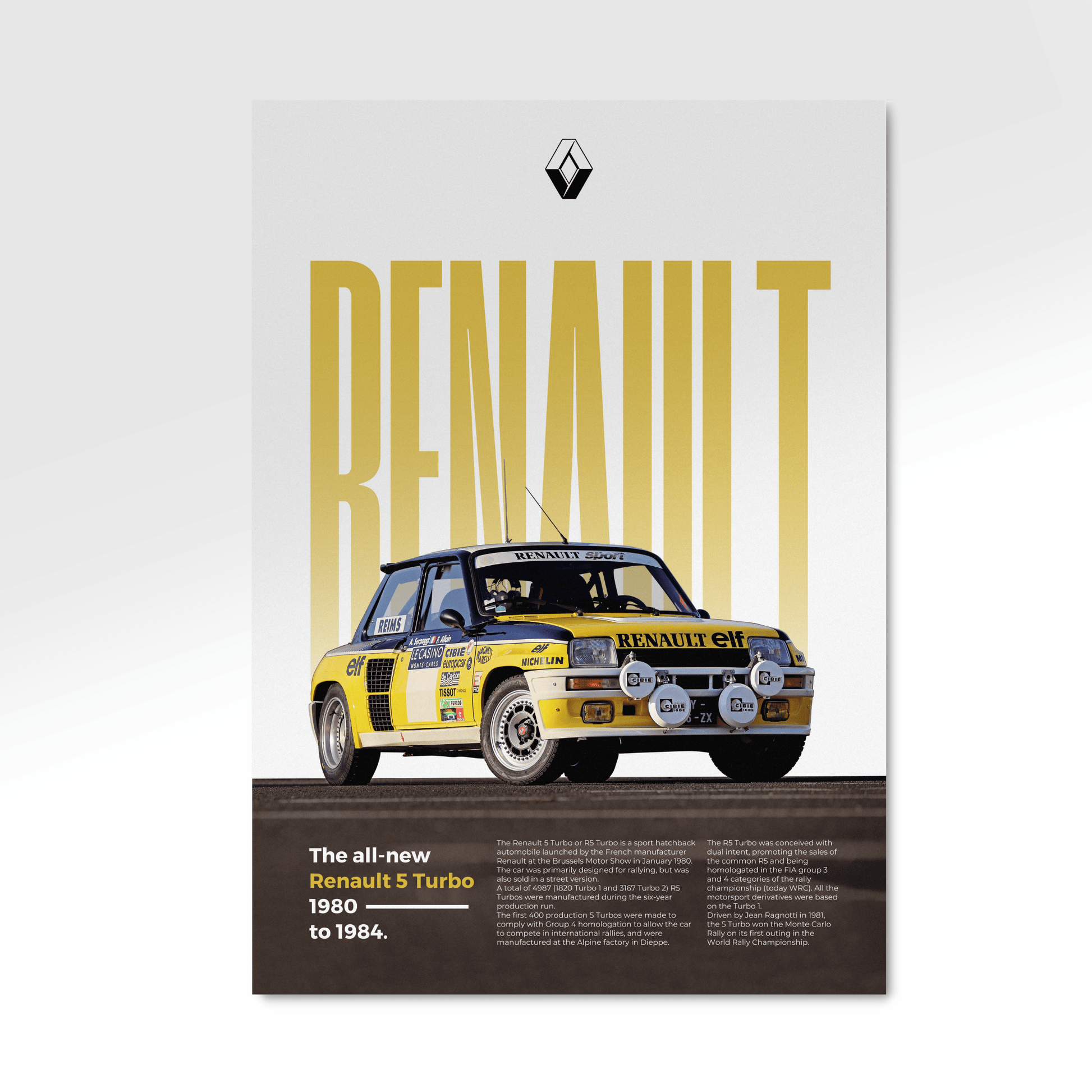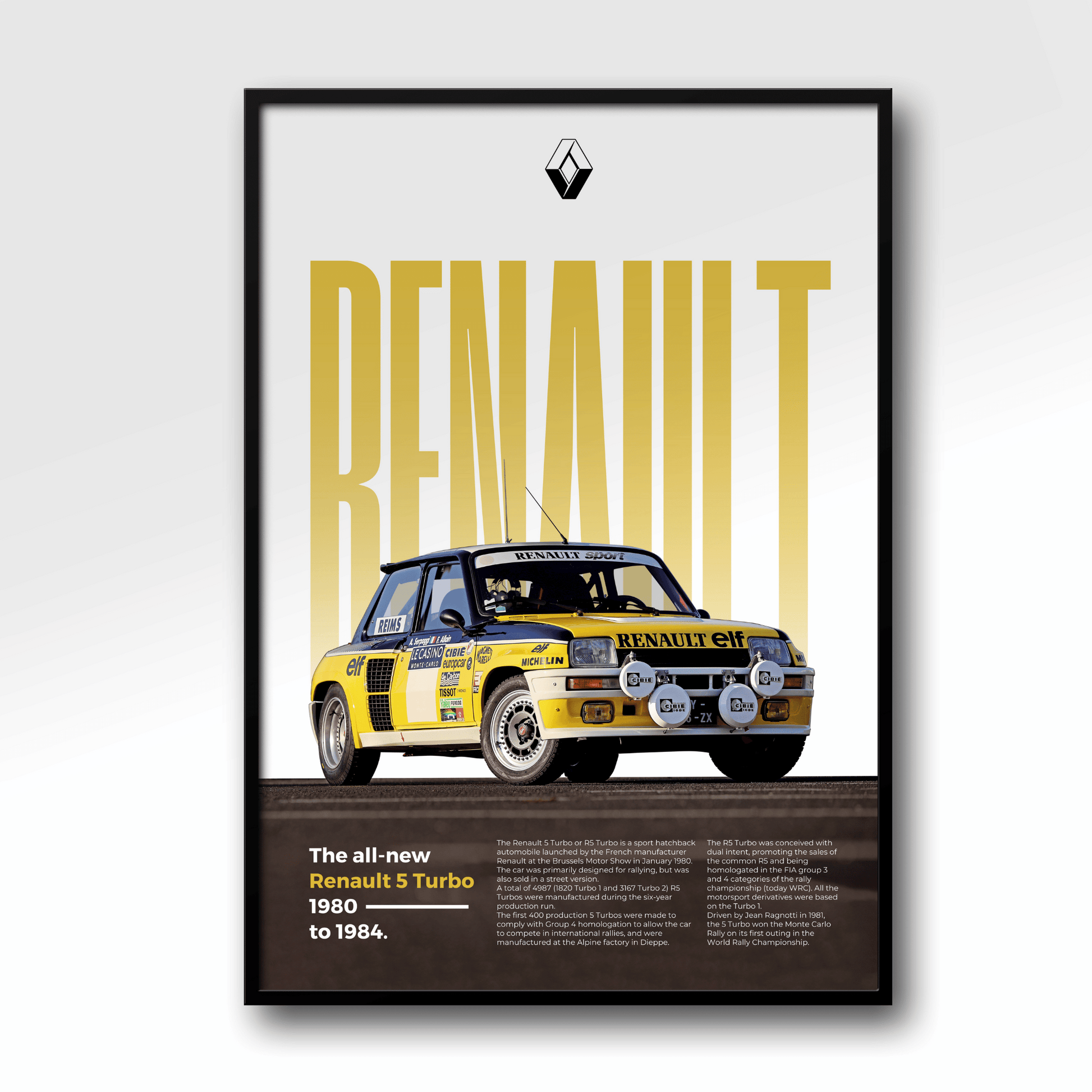 Affichez votre passion pour l'automobile avec ce magnifique poster de Renault 5 Turbo en édition Classique.