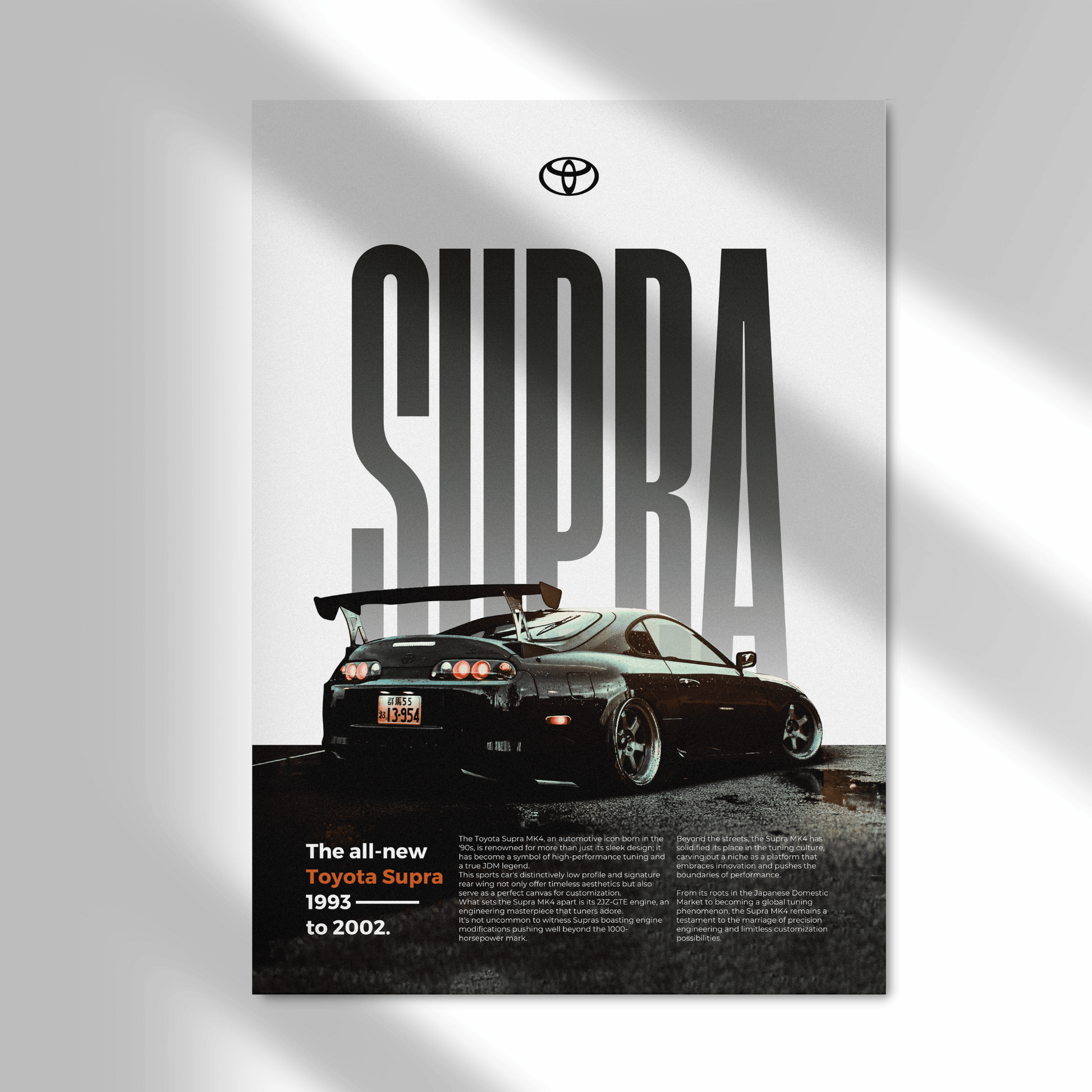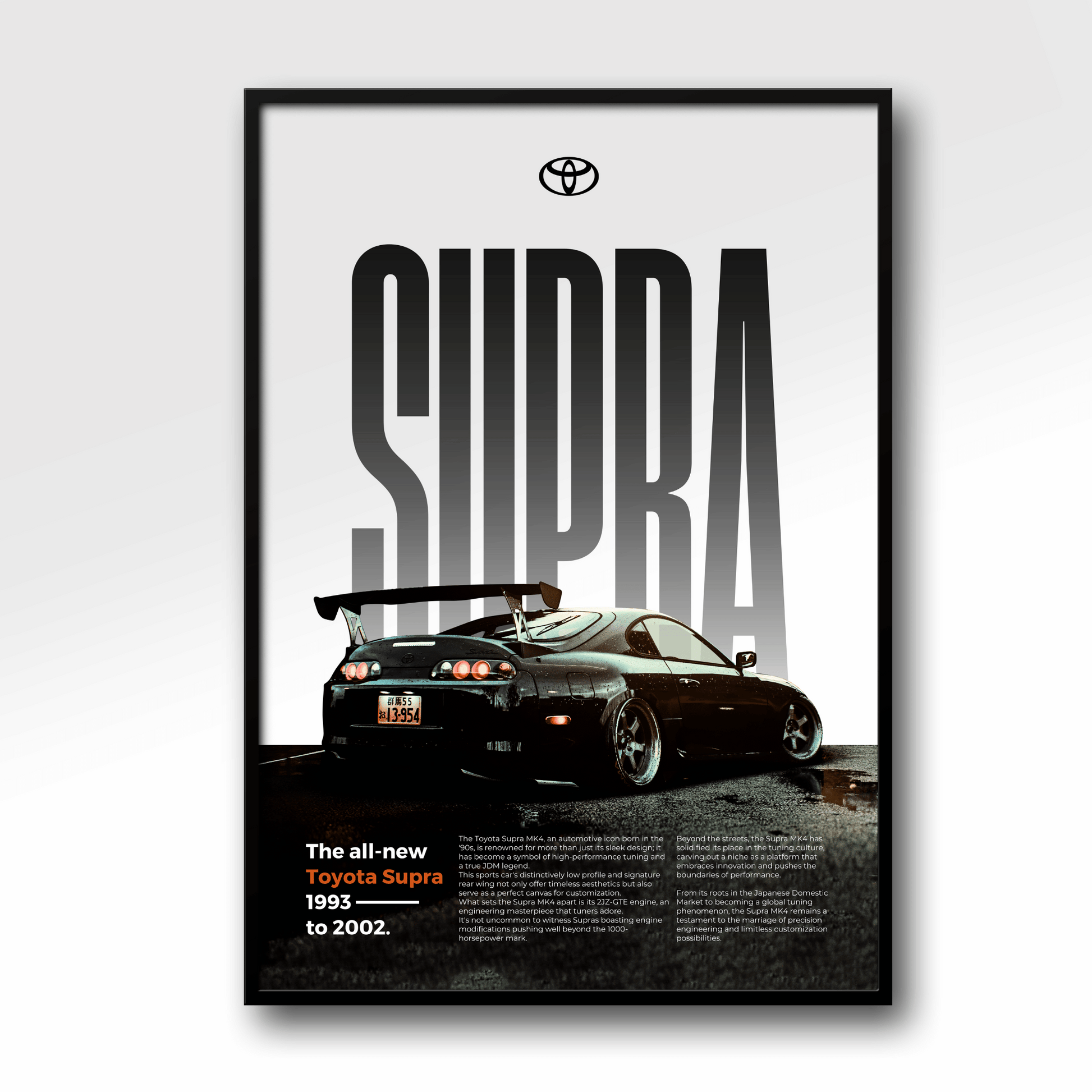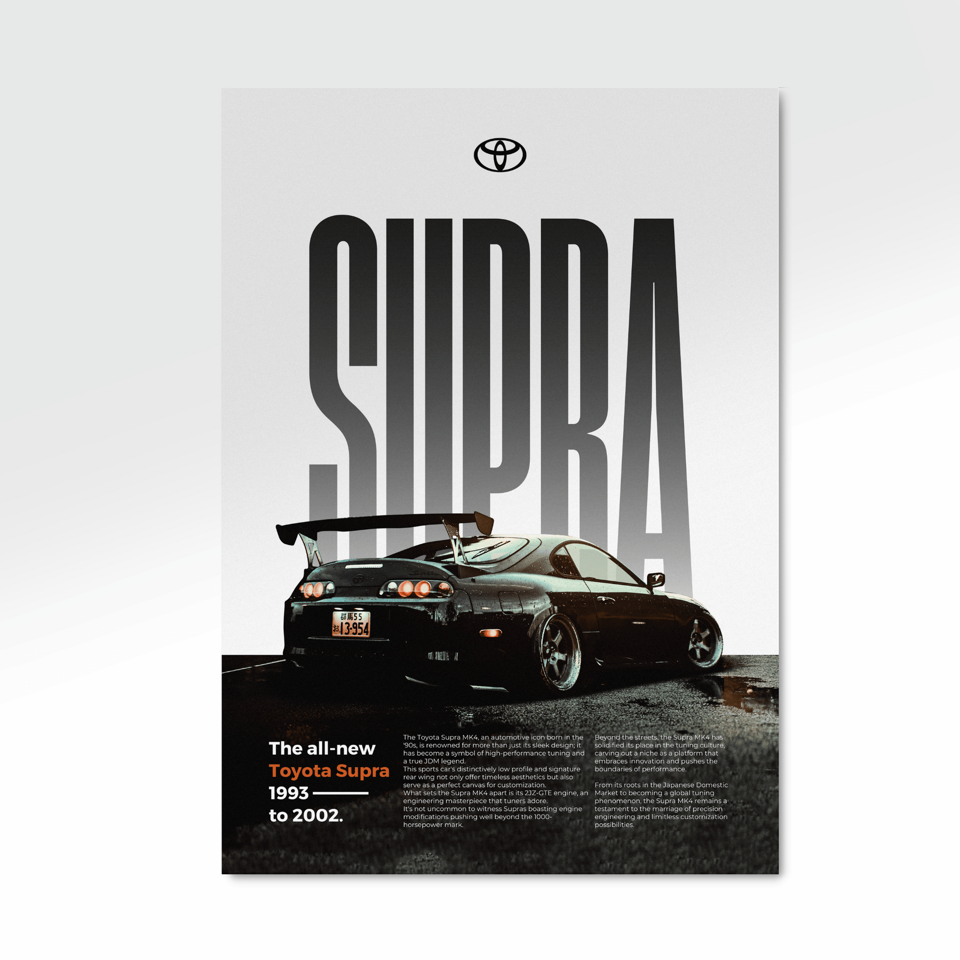 Affichez votre passion pour l'automobile avec ce magnifique poster de Toyota Supra MK4 en édition Classique.